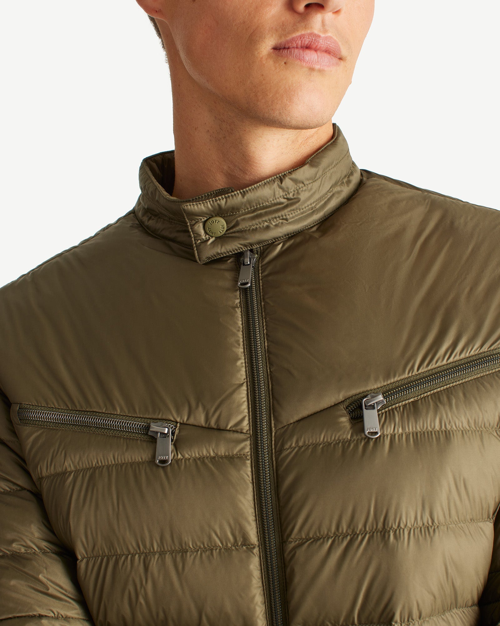 DAVID, la doudoune originale façon biker de JOTT, de quoi convertir même les inconditionnels du cuir ! Avec ses poches en biais zippées sur la poitrine, son col montant pressionné, ses zips aux poignets et ses découpes travaillées à mi-manches, ce blouson bien ajusté au look ultra-affirmé est un véritable must have de la saison.