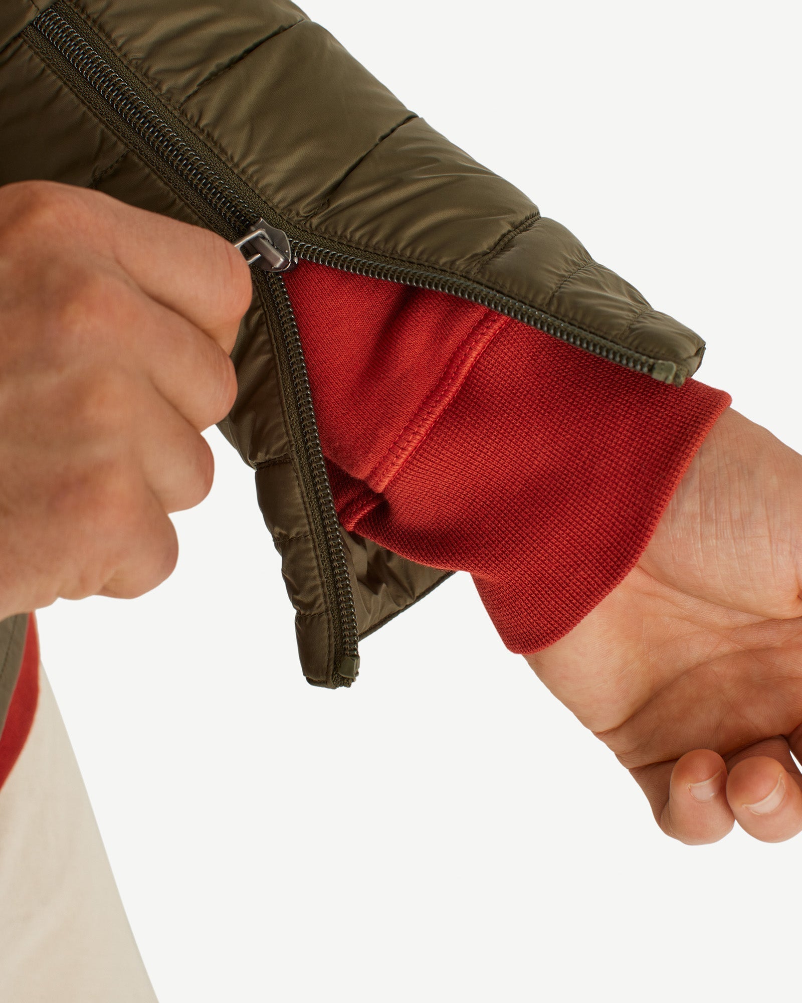 - Découpes doublées aux manches et zips