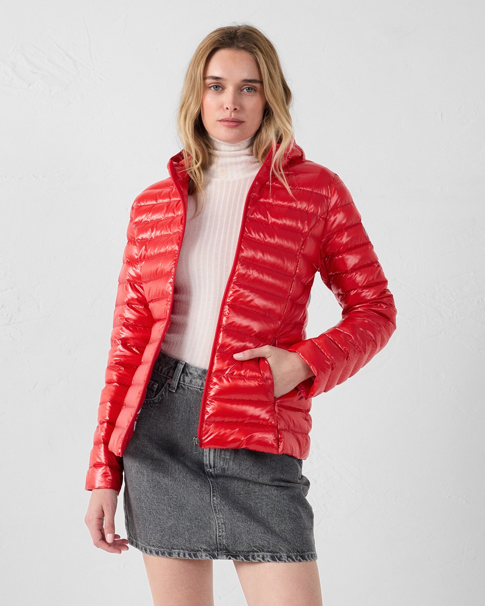 Doudoune légère à capuche Rouge carmin Cloe shiny