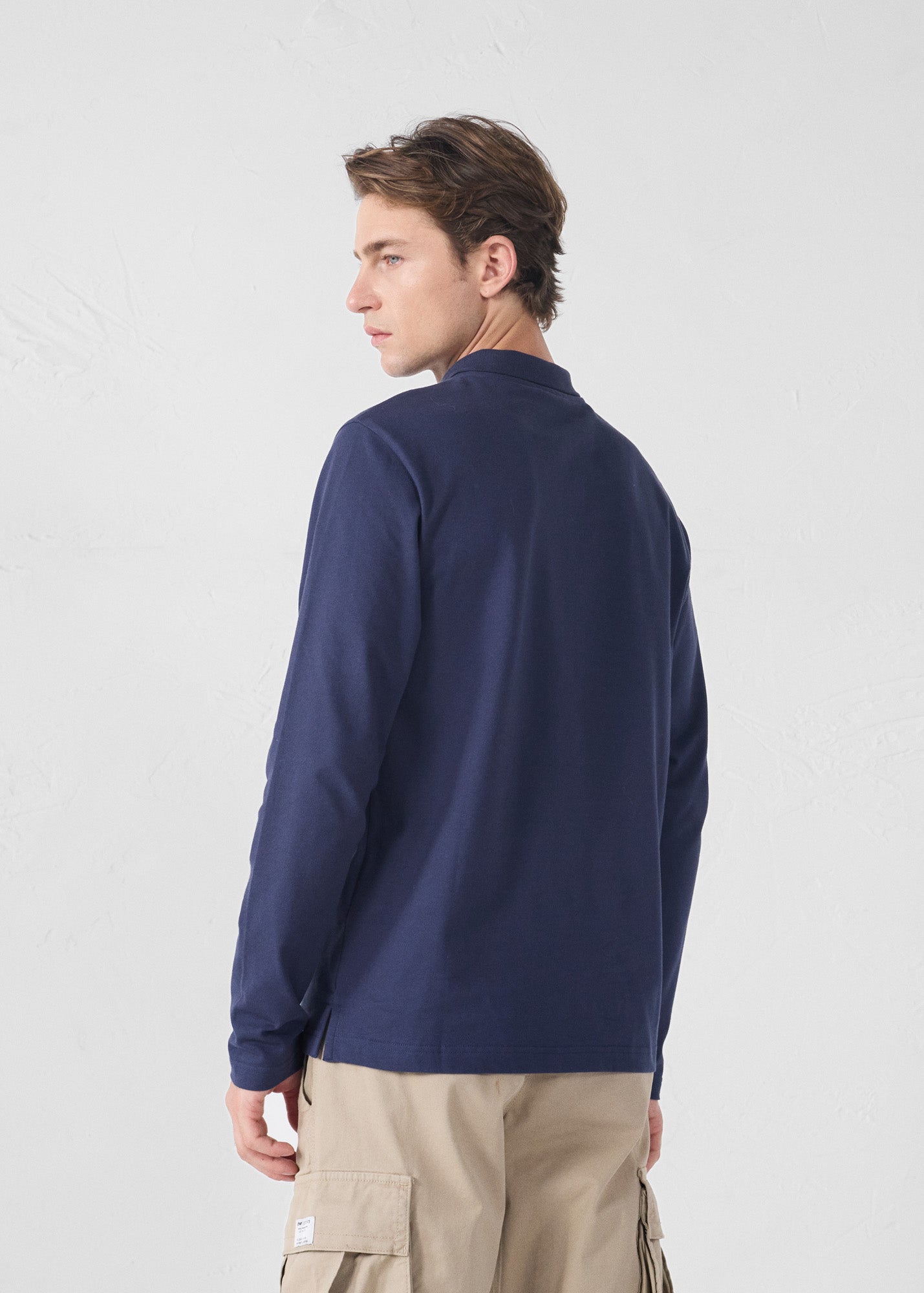 - Polo manches longues en piqué coton et élasthanne.